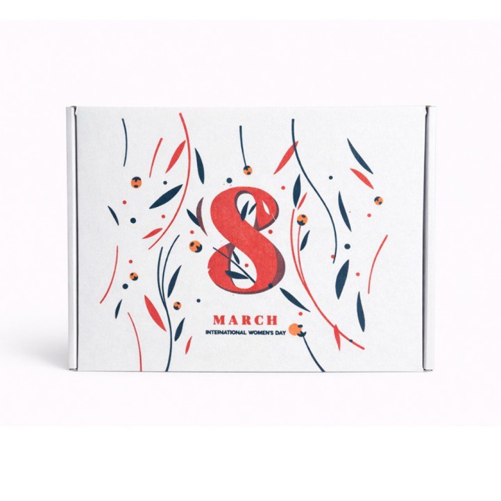 Cutii din carton 240X210X100 TK-24 Е alb cu imprimare UV vopsea “8 march” - o opțiune rezistentă și elegantă pentru ambalarea cadourilor. Adaugă o notă romantică și subliniază grija dumneavoastră. Fabricate din carton ondulat de calitate, asigură o protecție sigură împotriva deteriorărilor mecanice și a umezelii. Sunt perfecte pentru ambalarea hainelor, cosmeticei, bijuteriilor, și altor cadouri.