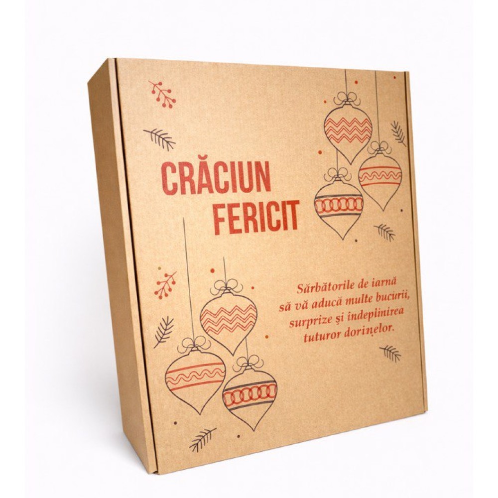 Cutii din carton 320X275X100 TK-22 Е craft cu imprimare ‘Craciun Fericit’ – alegerea perfectă pentru ambalarea cadourilor de Craciun si Anul Nou. Designul elegant cu inscripția ‘Craciun Fericit’ va conferi cadoului dumneavoastră un aspect special, iar cartonul ondulat de calitate va asigura o protecție sigură a conținutului. Cutiile sunt rezistente, ecologice și ușor de asamblat.