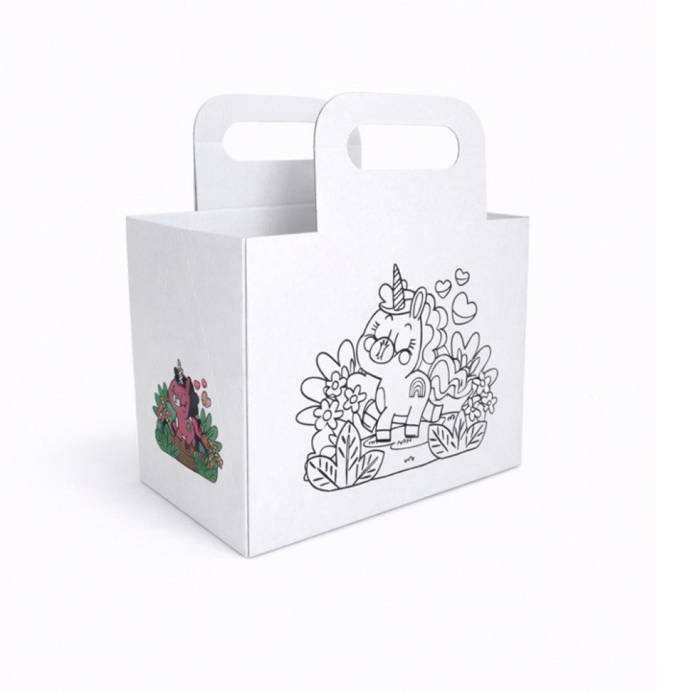 Сумки-раскраски 250X150X200 ‘Единороги’ - это волшебное приключение для маленьких художников! Сумки из гофрокартона TK-23 E с рисунками единорогов с обеих сторон ждут, когда их раскрасят. Дети могут проявить свою фантазию и создать уникальные сумки, полные волшебства.